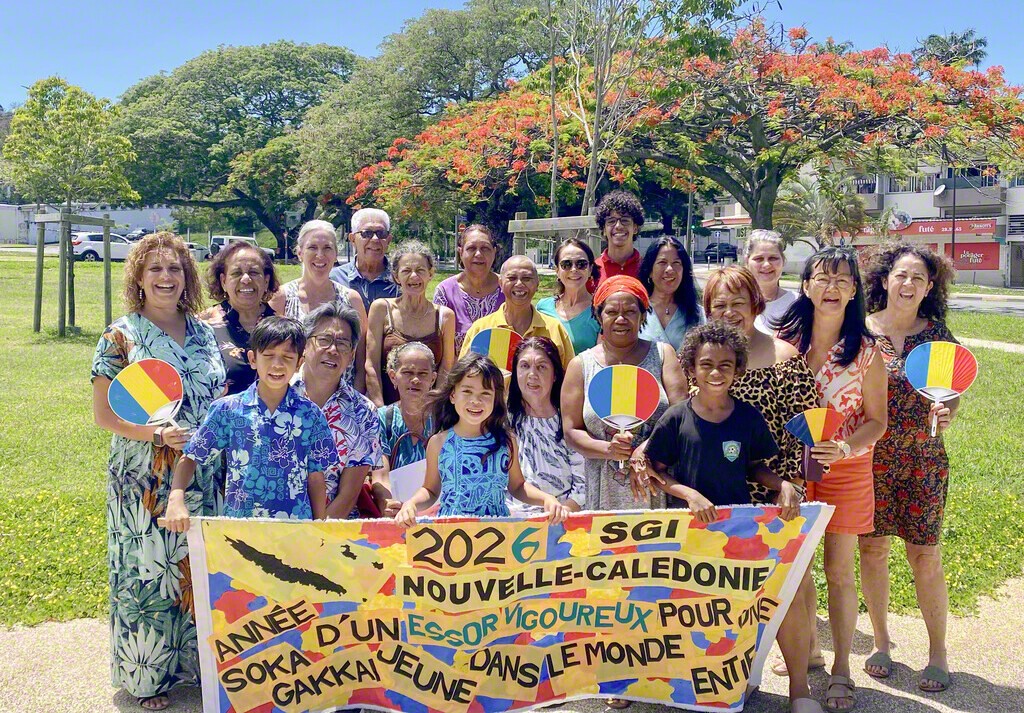 ニューカレドニアの新年の集いでは、代表が新年の御書を拝読し、本年の活動予定について語り合った。新入会の友も参加した(1月1日)