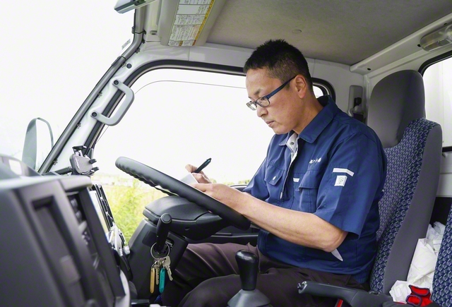 配送トラックのハンドルを握る小川淳宏さん。営業も兼務する