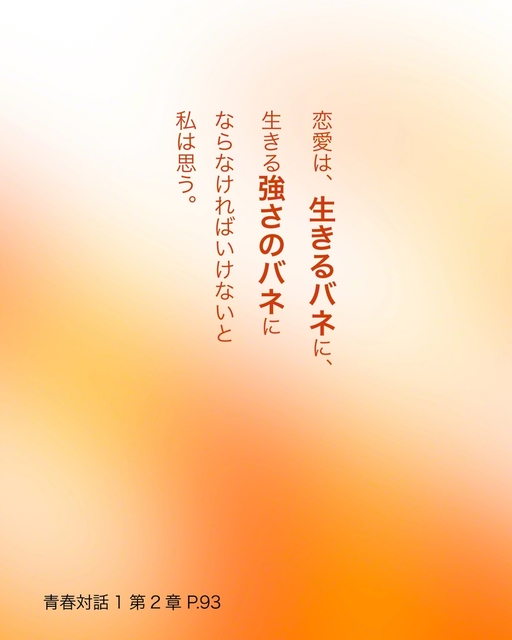 恋愛は、生きるバネに、生きる強さのバネにならなければいけないと私は思う。 青春対話1 第2章 P93