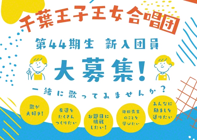 少年少女部の「千葉王子王女合唱団」(小杉山一哉団長)が第44期生となる新団員を募集しています。 【オーディション日時】 2026年1月25日(日)午後1時…