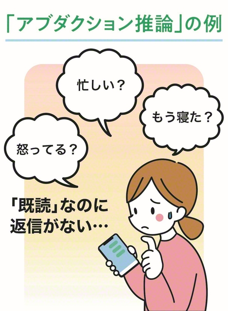 例えば、相手に送ったSNSのメッセージが「既読」なのに、返信がない。「何か怒らせちゃったかな?」「今は忙しいのかな?」「もう寝ているのかな?」などと心配するのはよくあることです。このように、目に見えない相手の気持ちや行動を想像することも「アブダクション推論」です。