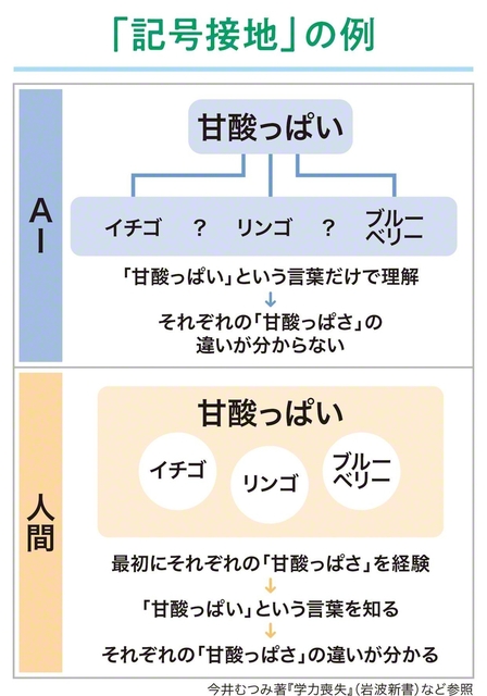 人間は「記号接地」の学びを通じて、言葉の意味を深く理解することができます。一方、AIは「記号接地」をすることができません。
