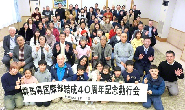 結成40周年を記念した総群馬国際部勤行会が11日、高崎平和会館で開催された(写真)。 小島総群馬総合国際部長のあいさつに続き、青栁光雄さん、菱嶋カズノリさん…