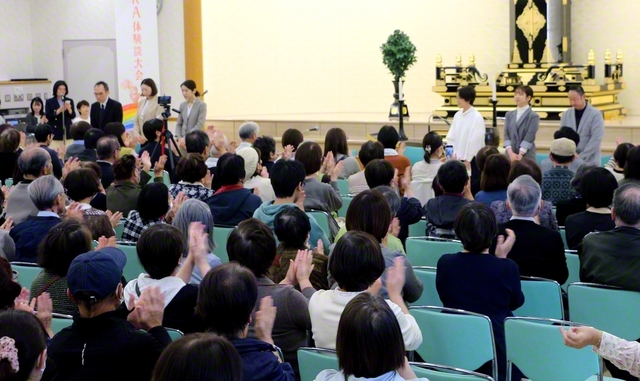 総県のSOKA体験談大会が2日、松山平和会館で行われた(写真)。 医療や介護の現場で奮闘する代表が登壇。ドクター部の邊見有紀さん、栗原秀一さん、白樺会(看護…