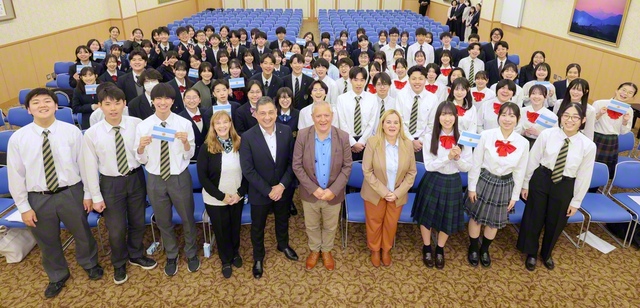 大橋未来部長、岡﨑女子未来部長があいさつ。質疑応答が行われ、ネグレティ学術所長は「青春時代の経験は、一生の宝になります。一日一日を大切にしてください」と語った。