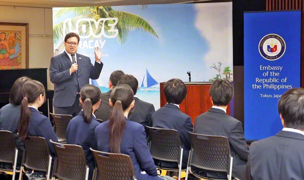 東京・創価高校(小平市)の生徒の代表が18日、東京・港区のフィリピン大使館を訪れ、クリスチャン・L・デ・ヘスス臨時代理大使と交流した。