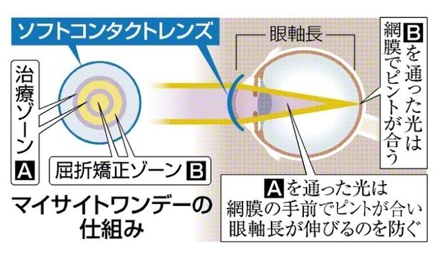 ◆近視の進行抑える点眼薬、コンタクトレンズ