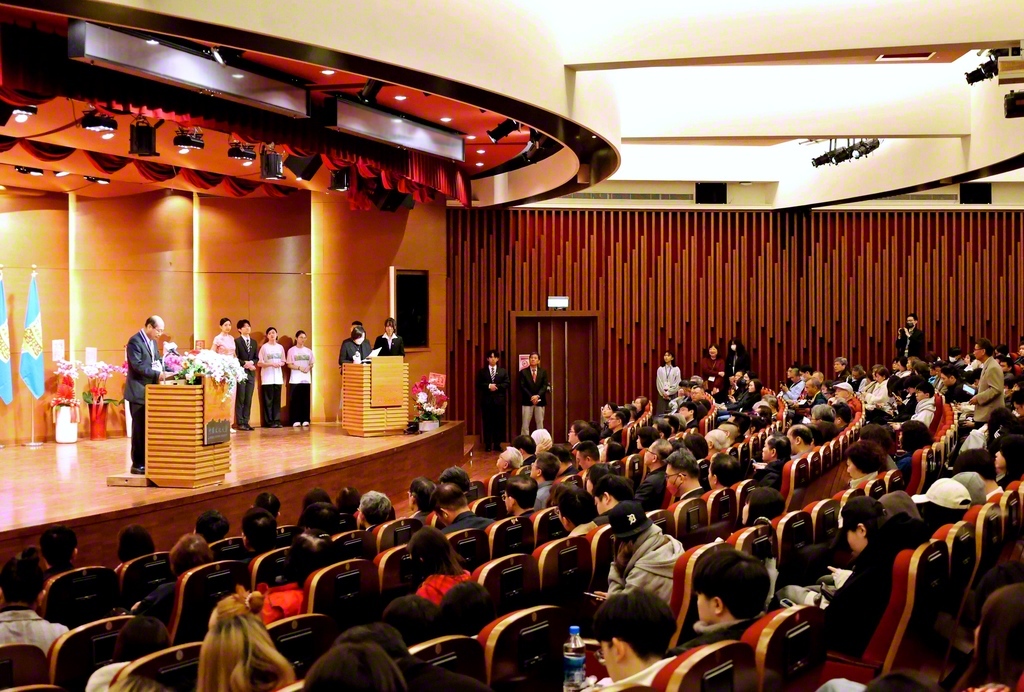 創大の秋谷理事長は、学生第一の精神を同じくする同大学と、これからも“きょうだい”として歩んでいきたいと述べた。