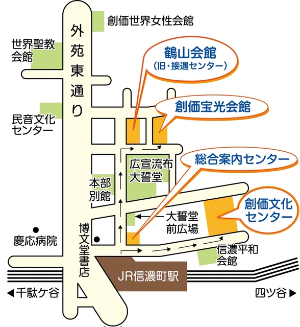 「5・3」記念期間は、各地から多数の方々が、東京・信濃町の創価学会総本部に来られます。皆さまが栄光の5・3「創価学会の日」を晴れやかに迎えられますように、会場の用途を明確にして、万全の対応をさせていただきます。