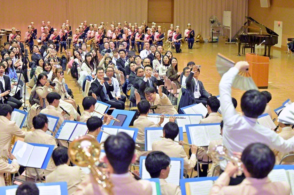 夜には、妙音会館で音楽隊・富士鼓笛隊との文化交流の集いが。創価エアレンデルの歓迎の演技に続いて、鷲尾鼓笛部長があいさつ。創価グロリア吹奏楽団の黒田大翔さんが体験発表し、創価シャイニングスピリッツと同吹奏楽団が記念の演奏を披露した。台湾の林子鈞男子部長、盧怡婷女子部長が感謝を述べた後、台湾の友が歌やダンス等のパフォーマンスを。また参加者全員で、体を動かし、歌を歌う「帯動唱」を行い、会場は笑顔に包まれた。音楽隊の鈴木副隊長があいさつした。