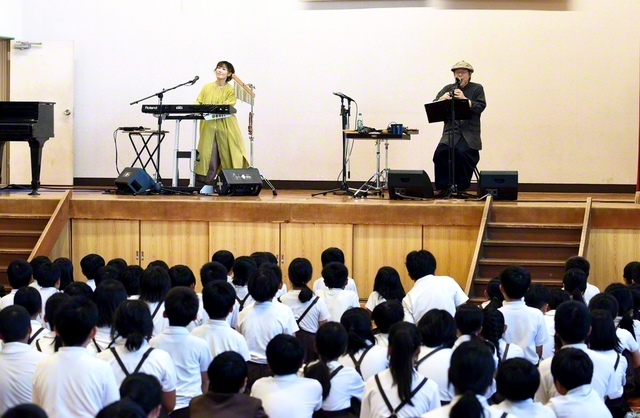 民音主催の「学校コンサート」が9日、玉名市立大野小学校で行われ、児童ら約300人が鑑賞した(写真)。 阿蘇を拠点に活動するデュオ「ビエント」が、南米の民族楽…