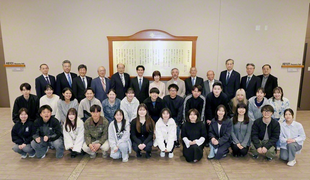 除幕式には学生歌の制作に携わった卒業生らも参加。秋谷理事長、鈴木学長が、今後も創立者の精神を胸に、大学のさらなる発展へ共に力を尽くそうと呼びかけた。最後に、参加者全員で学生歌を歌い上げた。
