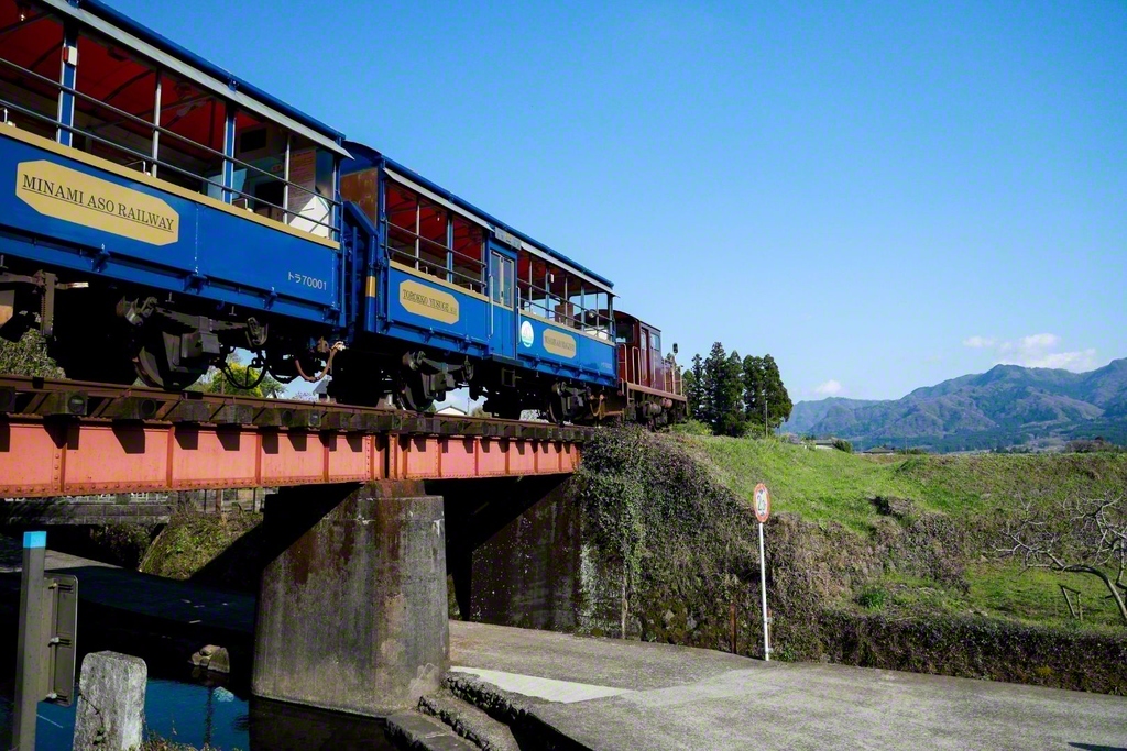 「南阿蘇水の生まれる里白水高原」駅を通過する列車