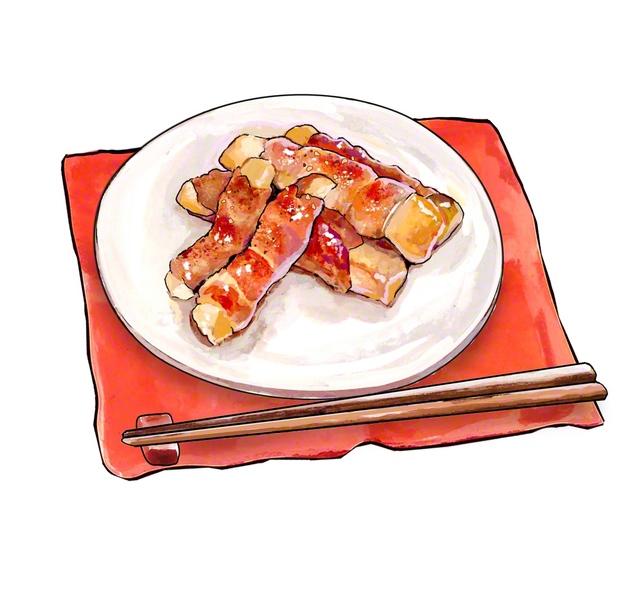 ・切り餅 2個 ・ミニエリンギ 1本 ・豚バラ薄切り肉 100g ・薄力粉 小さじ1程度 ・油 大さじ1/3 ・酒 大さじ1 ・みりん 大さじ1…