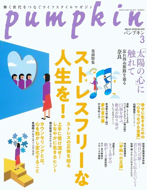 池田大作先生の同誌への連載エッセーを振り返る「『太陽の心』に触れて 忘れ得ぬ旅路を辿る」は「奈良――“いのちの賛歌”きらめく歴史の都」を掲載。巻頭特集「ストレスフリーな人生を!」ではストレスで心を病む人が増えている現代において、ストレスと上手に向き合い、ため込まない方法などを紹介する。