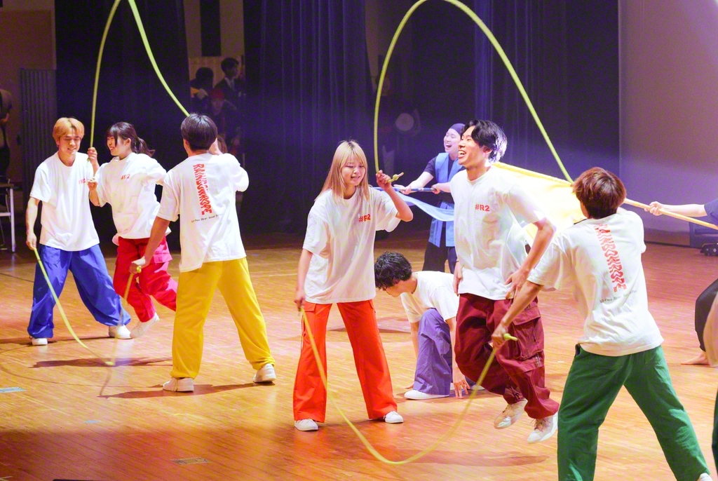次いで、歓迎演目として沖縄舞踊のクラブ「イチャリバチョーデーズ」とダブルダッチ部「R2」がパフォーマンスを披露。在学生の向井賢さん、リカ・タカハシさん、桜井伸之さんが自らの体験を交え、新入生にエールを送った(要旨を別掲)。