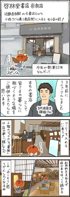 こま鳥のスピンくんが奈良の書店の魅力を紹介します。 ◇ 啓林堂書店奈良店=奈良市西御門町1の1 開店時間=〈店舗〉午前9時~午後9時〈ブックカフェ「書…
