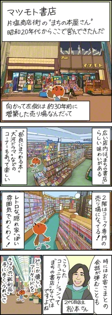 こま鳥のスピンくんが奈良の書店の魅力を紹介します。 ◇ マツモト書店=大和高田市片塩町16の4 開店時間=午前10時~午後7時 定休日=木曜 ※マ…