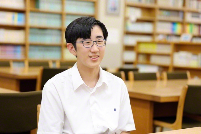 私は昨年、創価中学校のアメリカ創価大学研修に参加しました。初めての海外で緊張しましたが、英語の勉強を頑張る大きなきっかけになりました。東京中には、ほかにも楽しく学べる授業がたくさんあります。特に、同学年の友だちと教え合う雰囲気が大好きです。一緒に勉強する中で、語学力を伸ばせています。未来の学園生の皆さんも、楽しく勉強できますよ!