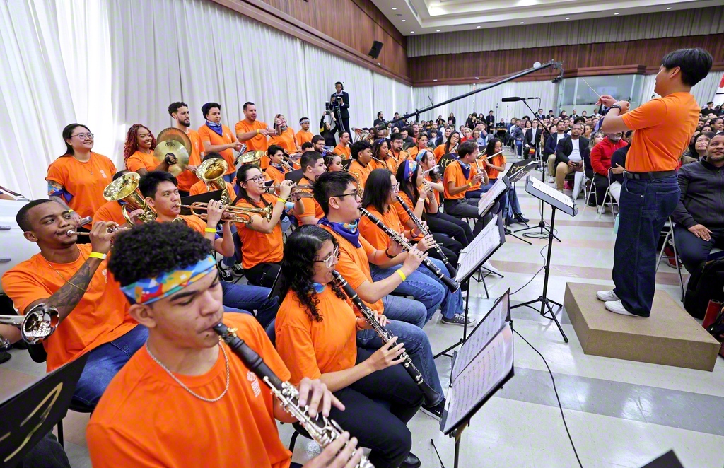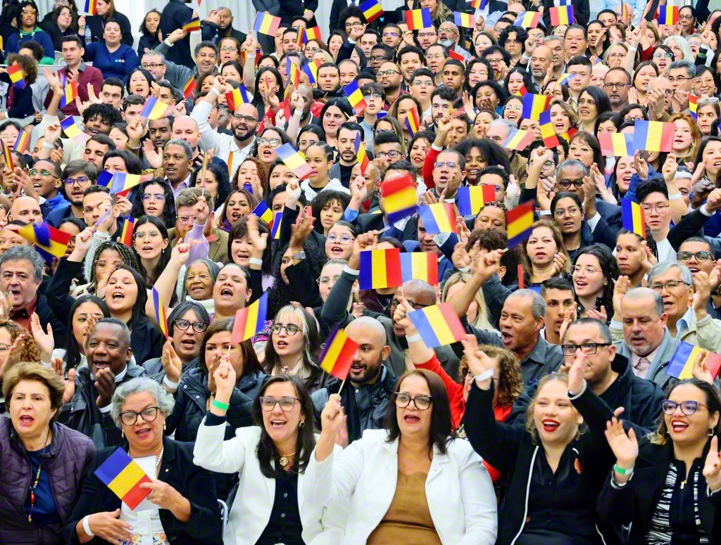 「エ・ピケ、エ・ピケ、エ・ピケ、ピケ、ピケ! エ・オラ、エ・オラ、エ・オラ、オラ、オラ! ハ・チン・ブン、センセイ! センセイ! センセイ……」――ブラジル広布の新章節の開幕を告げる歓呼の声が、ブラジルSGI自然文化センターに響きわたる。