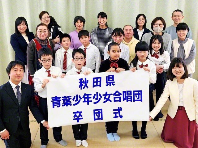 秋田県青葉少年少女合唱団の卒団式が1日、秋田中央文化会館で開かれた(写真)。 式では、この1年、読書や定例会への参加に励んだメンバーを表彰し、その努力と成長…