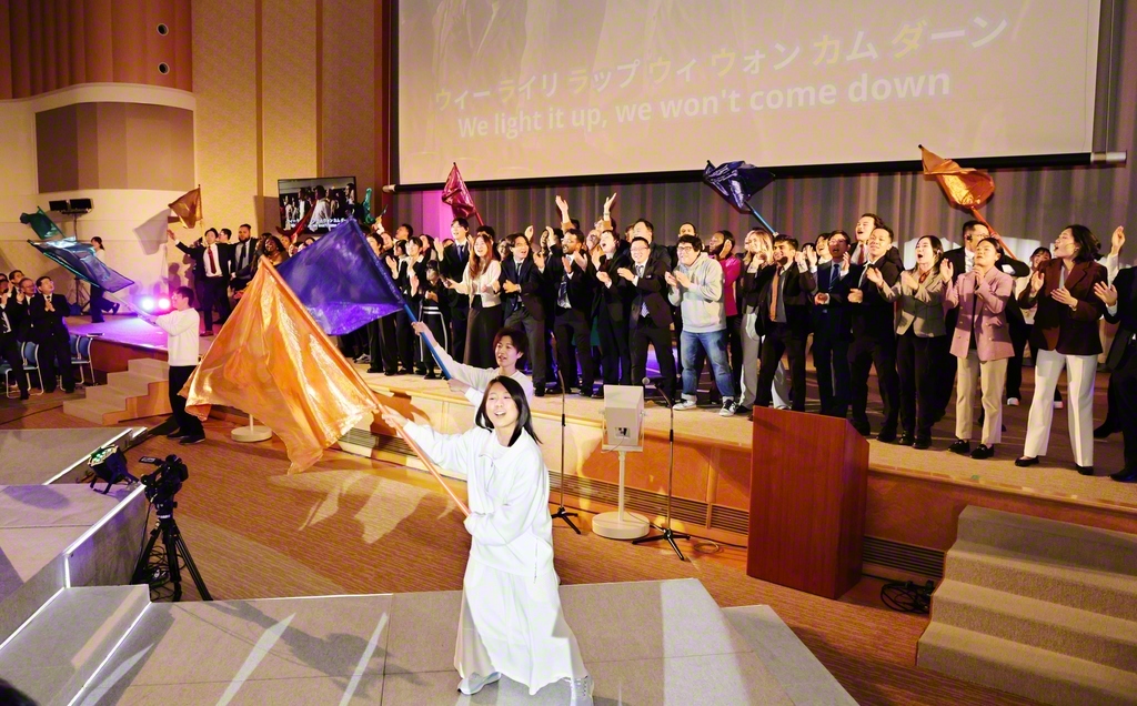 最後に、世界平和への誓いを込めて、世界青年部歌「Eternal Journey with Sensei!~永遠の師弟旅~」を全員で合唱。参加者の表情は、出発の決意に満ちていた。