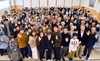 折伏の歓喜は周囲に伝播し、共に歩んできたヤング白ゆり世代の同志も奮起。皆で広布を拡大して迎えた舞台は不滅の原点と輝く。