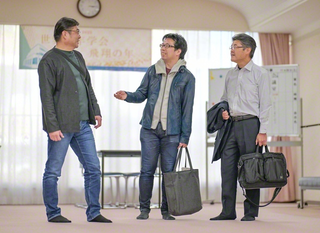 壮年部の先輩と談笑する山本さん㊥。同志との絆は「苦境の中で得た最高の幸せ」(大阪市の東住吉文化会館で)