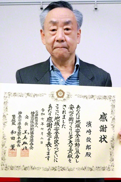 定年後、積極的に地域に関わろうと、町内会で防犯部長などを担当する濱﨑さん。絶対無事故を祈念し、町の安心安全に努めている。 神奈川県警では、今月15日から1月…