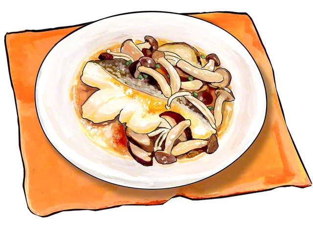 ・生タラ切り身 2枚(200g) ・塩、こしょう 少々 ・小麦粉 適宜 ・シイタケ 4枚 ・エノキ 1/2パック ・シメジ 1/2パック ・サラダ…