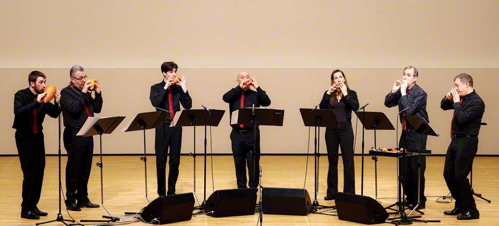 公演では、イタリアのオペラや伝統曲、日本の歌曲などを披露。大小異なる7つのオカリナが生み出す豊かな音色のハーモニーに、会場から大きな拍手が送られた。