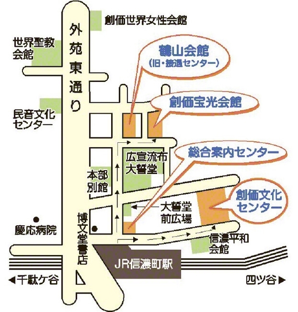 ご来館の際は、同センター南口(JR信濃町駅・信濃平和会館側)をご利用ください。