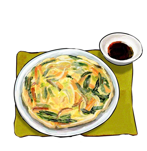 ・タマネギ50g ・ニラ50g ・ニンジン30g ・卵1個 ・小麦粉80g ・片栗粉20g ・水100㎖ ・スライスチーズ(プロセスチーズ)1枚…