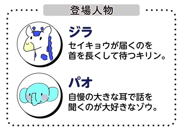 首を長くして待つほど聖教新聞が大好きなジラと、話を聞くのが大好きなパオ。2月に掲載された記事のヨミドコロを話しているようです♪