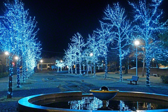 本宮市の「みずいろ公園」が、青くライトアップされていた(12日撮影)。 “光の芸術”を楽しげに鑑賞する親子の姿もあり、寒さに縮こまる心がホッと温かくなった。…