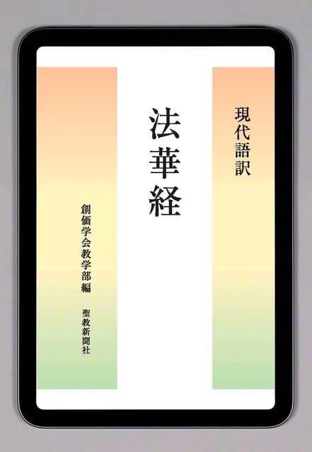 創価学会教学部編『現代語訳 法華経』の電子書籍(写真)が完成した。 本書は、鳩摩羅什の漢訳『妙法蓮華経』を、一昨年に刊行された創価学会版『妙法蓮華経並開結 …