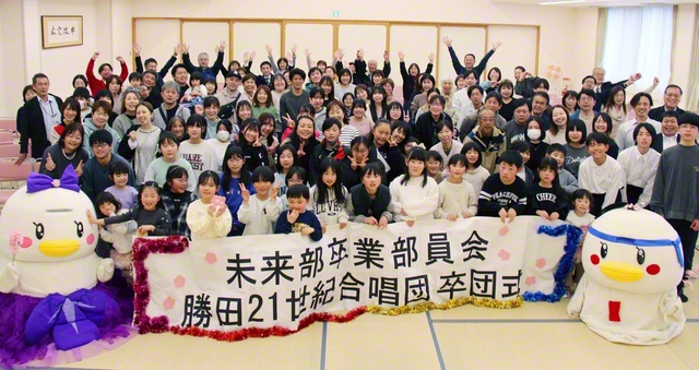ひたちなか常勝県の未来部の卒業部員会と勝田21世紀合唱団の卒団式が3月22日、勝田文化会館で開かれた。 未来部歌「正義の走者」を全員で合唱した後、小学6年、…