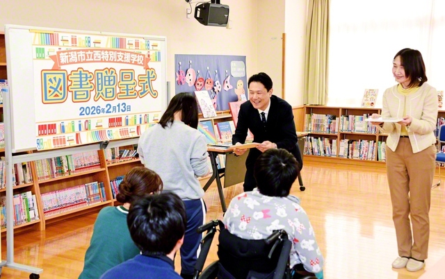 新潟市立西特別支援学校に13日、創価学会から優良図書と書架が贈呈された。今後5年間にわたって、毎年追加で図書が贈られる。 贈呈式では、木下総新潟長があいさつ…