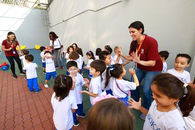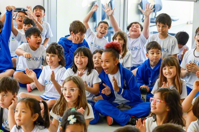 ブラジル創価学園「小学校の部」の子どもたちが笑顔で。将来の夢を尋ねると、「サッカー選手!」「お医者さん!」「ブラジル創価学園の先生になる!」等々と