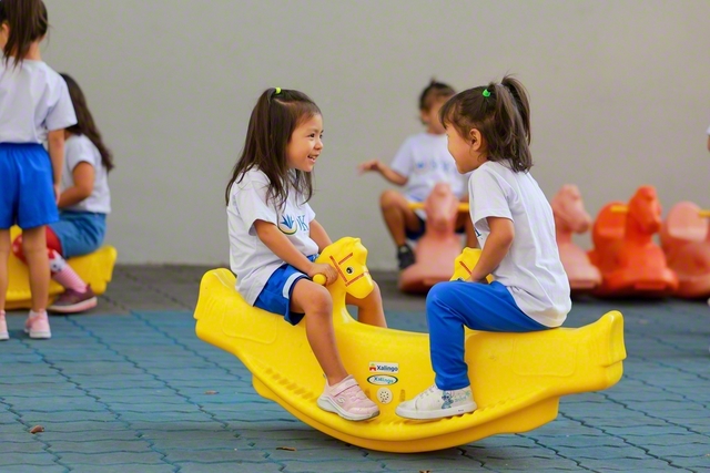 園児たちが仲良く遊ぶ。「次は何しようか?」