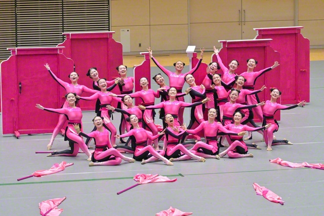 息の合った動きと弾ける笑顔。高々と舞うフラッグ。鮮やかなピンクの衣装をまとった熱演に、聴衆からは割れんばかりの拍手が送られた。