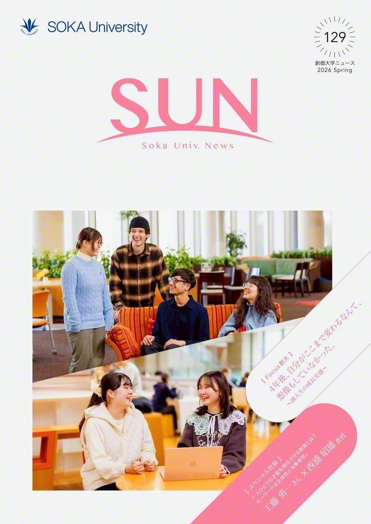 創価大学の広報誌「SUN」の2026年春号(写真)が完成した。デジタルブック版も同大学のホームページで公開されている。