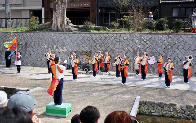 京都富士鼓笛隊(川口珠由部長)が3月29日、京都市内で行われた第15回「堀川桜まつり」に出演した(写真)。 池田華陽会歌「華陽の誓い」や人気アニメの曲などを…