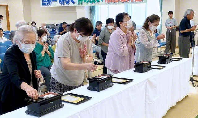 秋季彼岸勤行法要が9月23日、県内の各会館で厳粛に執り行われた。 このうち坂井会館では、常勝坂井圏の友らが集い、勤行・唱題、焼香を行った(写真)。 広宣流…