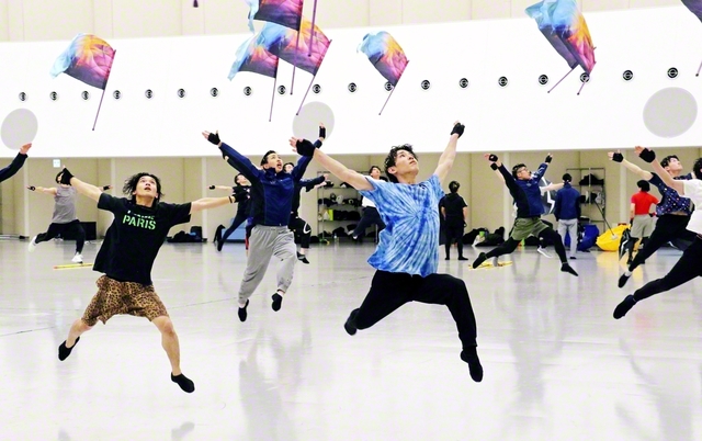 全国大会でのステージ。「Solaris ~雨空の彼方に~」をテーマに、太陽のごとく輝く「人生の栄光」を目指し、どんな苦難にも毅然と立ち向かう模様を表現した(7日、さいたま市内で)