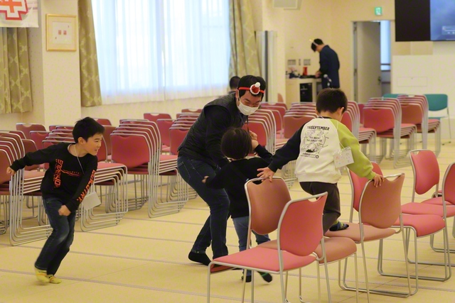 じゃんけん列車や、会館全体を使った宝探しゲームなどを楽しんだ(同)