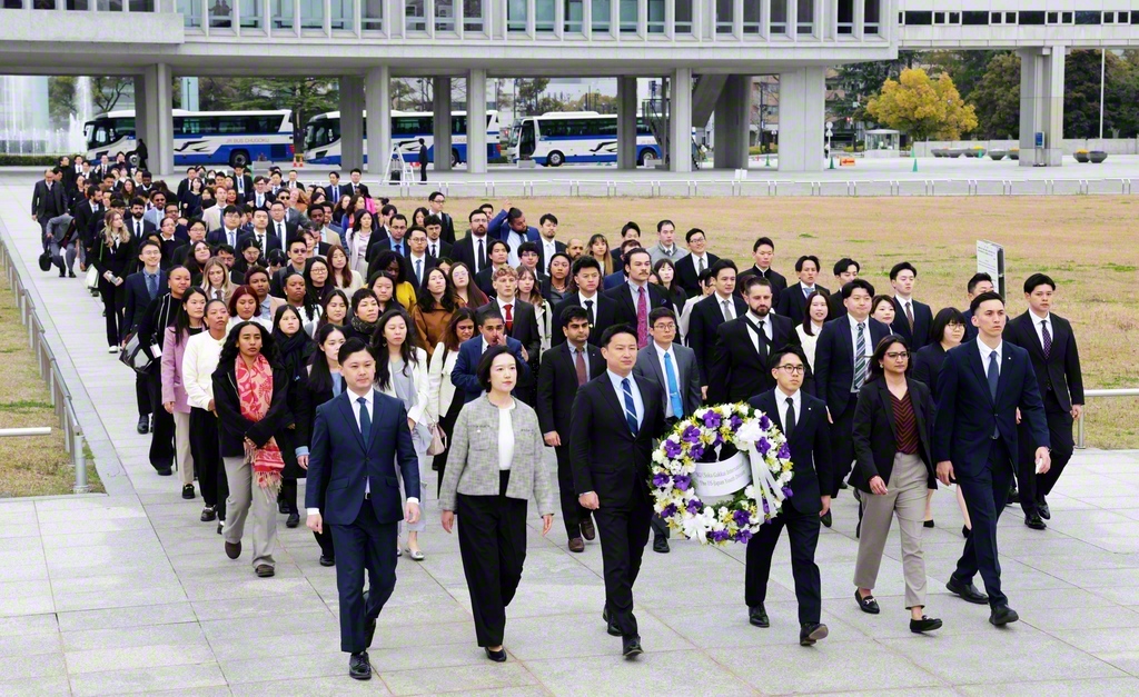 来日中のアメリカ青年部一行が22日、日本の青年世代の代表と共に、広島市の平和記念公園などを訪問した。