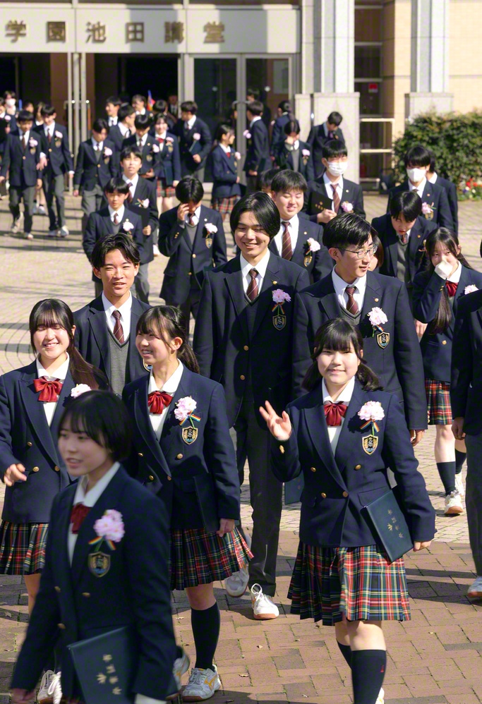 東西の各校の式典では、学園生活で磨いた負けじ魂を胸に、使命の舞台へ飛翔しゆく誓いが光った。