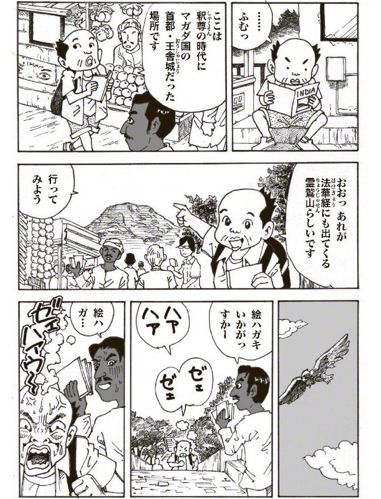 ――法華経のイメージが湧かず、原稿に行き詰まるまっと君。それならばインドに行ってみよう! そこで見たものとは……。