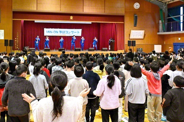 民音主催の学校コンサートが25日、静岡・小山町立北郷小学校で行われ、アカペラグループ「INSPi」が歌声を披露した。 アニメソングやポップスなどを熱唱し…